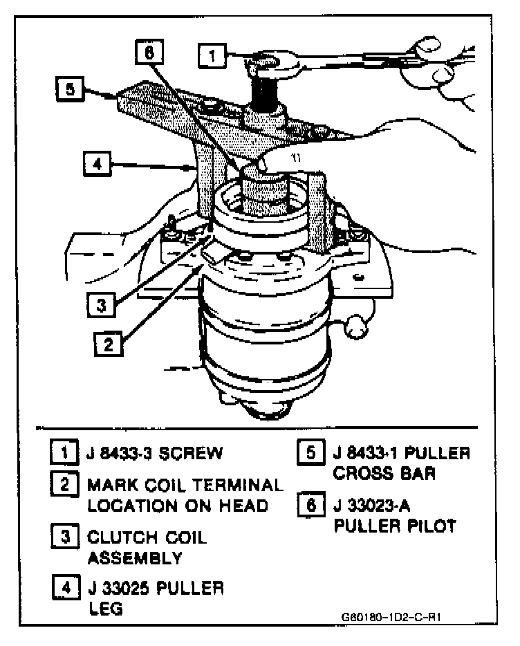 NOTICE: Mark clutch coil terminal location on compressor front head.