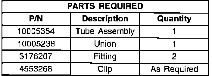 8. Connect the tubes together utilizing union, P/N 10005238, and fitting, P/N 3176207, and secure to brake pipe(s) with a tie strap.