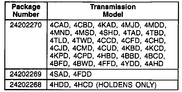 When performing any other repairs on a 1994 vehicle equipped with a HYDRA-MATIC 4L60-E transmission built before March 7, 1994 (Julian Date 066), the spacer plate identification must be checked to see if the transmission has had a new garage shift package installed to be sure the transmission is being serviced with the proper parts.