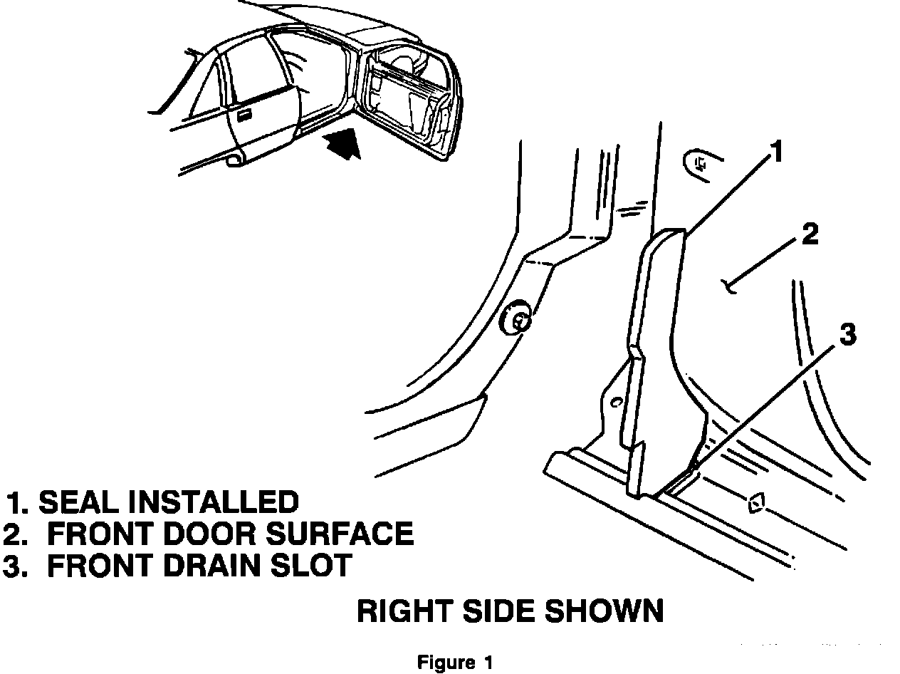 Install new foam seal, P/N 10249066, (when ordering two (2) pieces are required), one for left hand front door and one for right hand front door. Follow procedures listed below for installation: