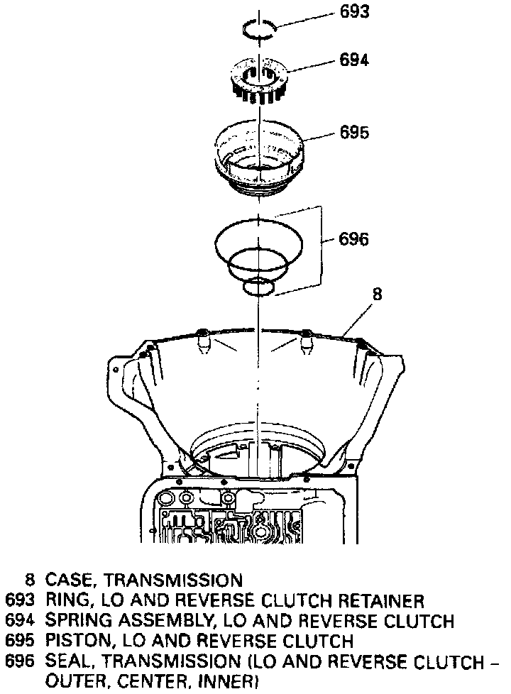 1. Inspect low and reverse piston for porosity or ring groove damage.2. Inspect piston seals for nicks or cuts.