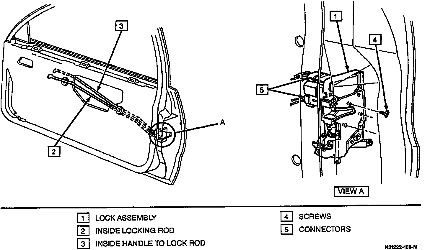 4. Outside door handle to lock rod, and lock cylinder rod.
