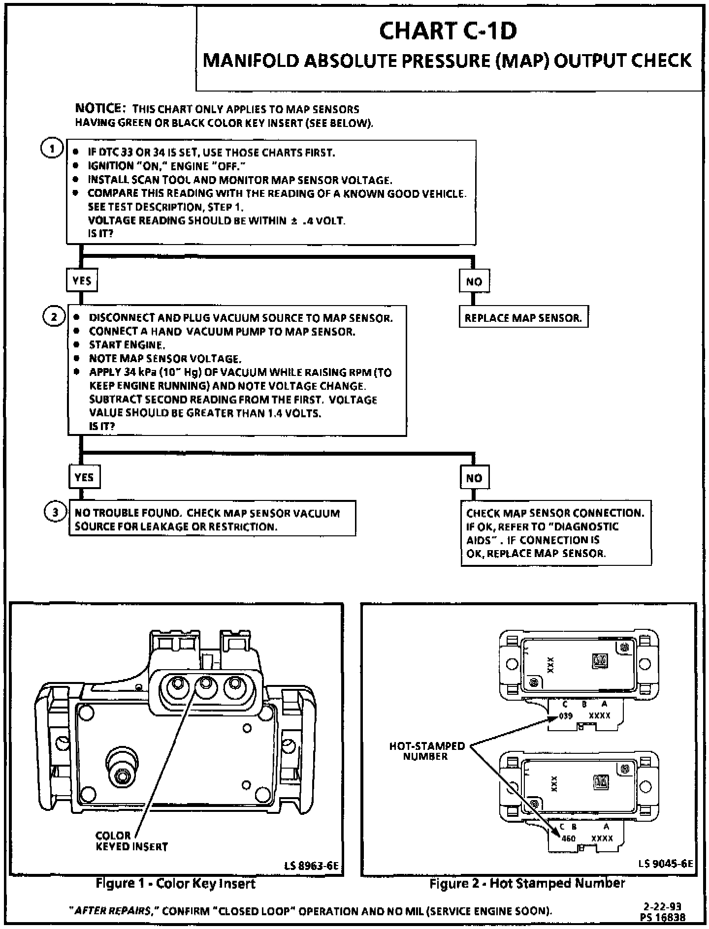 1. When comparing Tech 1 scan tool readings to a known good vehicle, it is important to compare vehicles that use a MAP sensor having the same color insert or having the same "Hot Stamped" number.