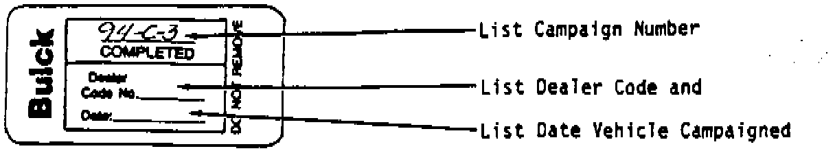 Each vehicle corrected in accordance with the instructions outlined in this Product Campaign Bulletin will require a "Campaign Identification Label." Each label provides a space to include the five (5) digit dealer code of the dealer performing the campaign service. This information may be inserted with a typewriter or a ball point pen.
