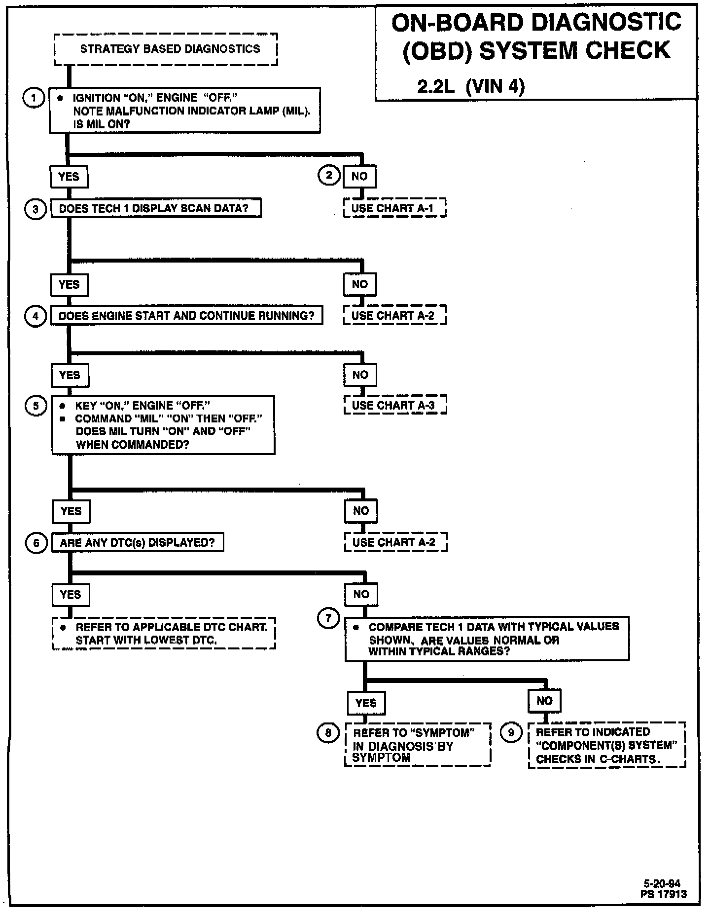 The On-Board Diagnostic (OBD) system check is an organized approach to identifying a problem created by an electronic engine control system malfunction. It must be the starting point for any driveability complaint diagnosis, because it directs the service technician to the next logical step in diagnosing the complaint. Understanding the chart and using it correctly will reduce diagnostic time and prevent the unnecessary replacement of good parts.