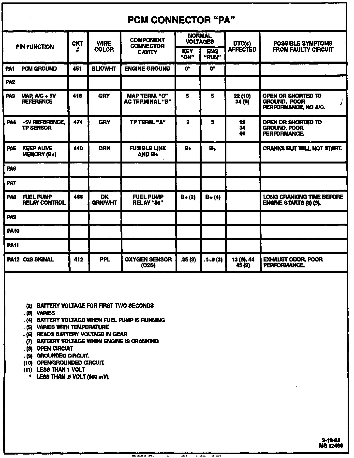 PCM Symptom Chart (Pink A1- A12):