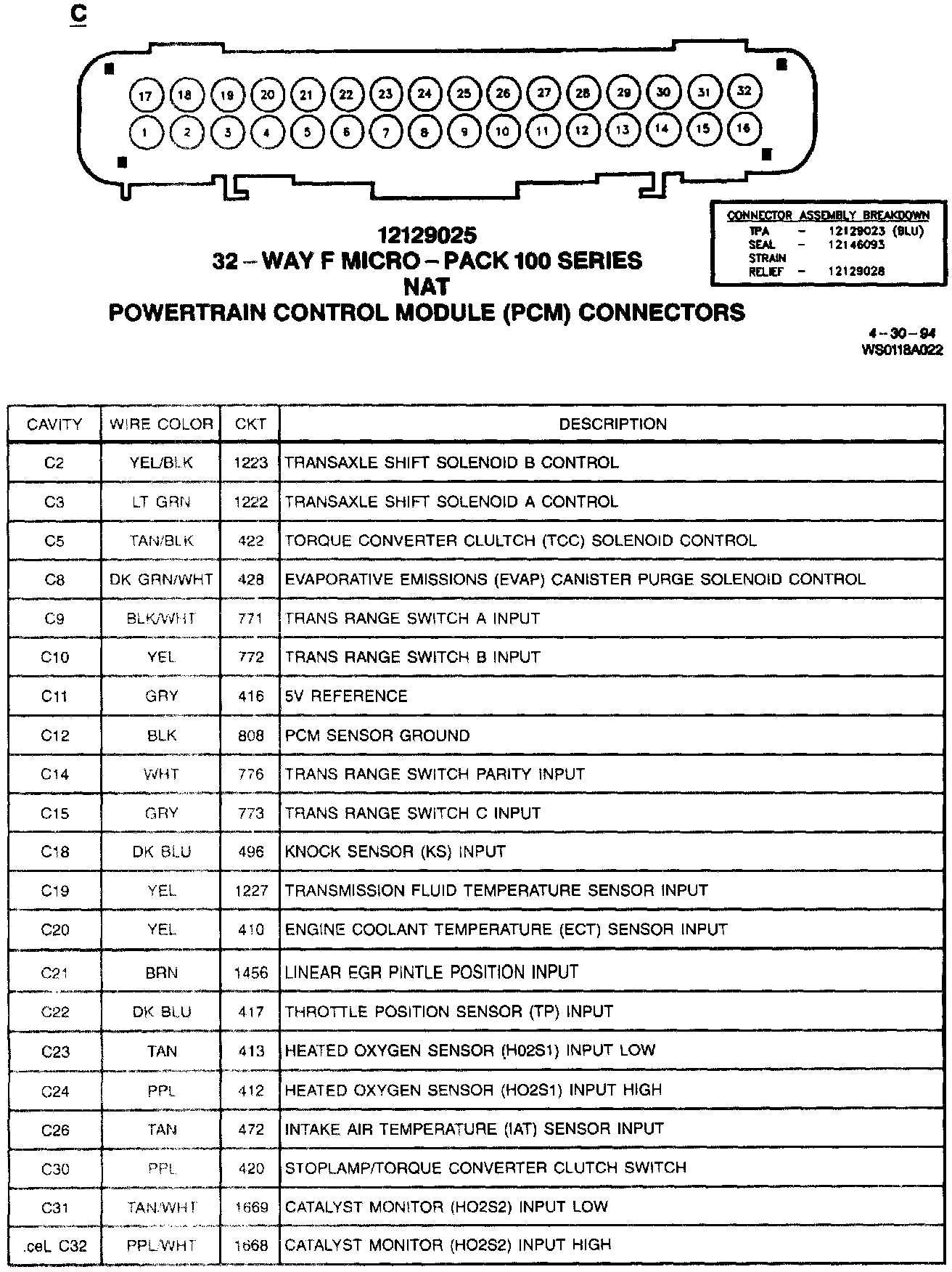 C: Powertrain Control Module (PCM) Connectors: