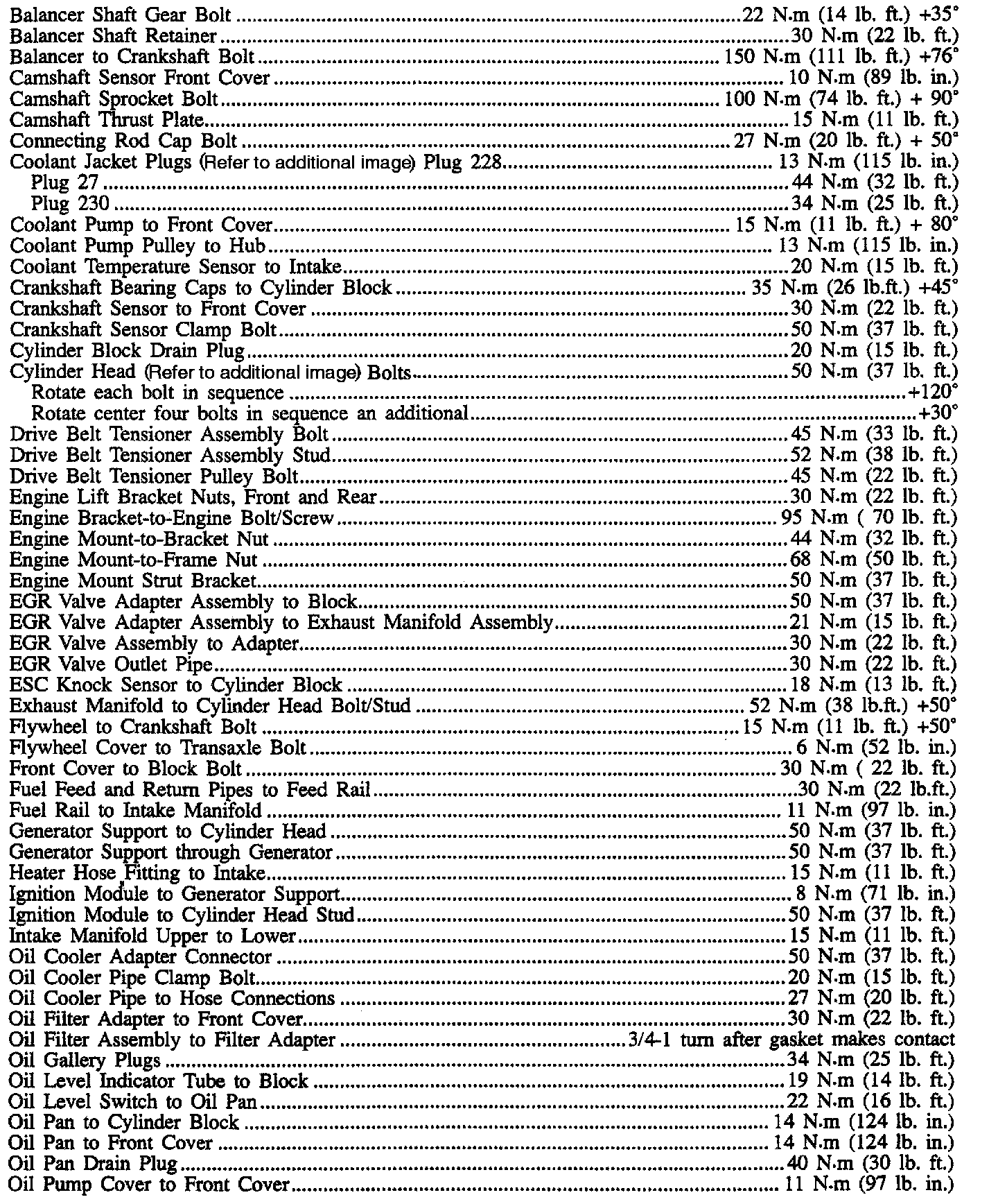 Fastener Tightening Specifications - Engine