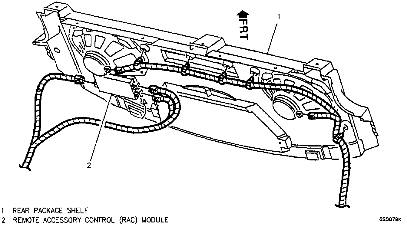 3. Press up on tab on right side of RAC module and slide module toward the driver side until mounting rails disengage.