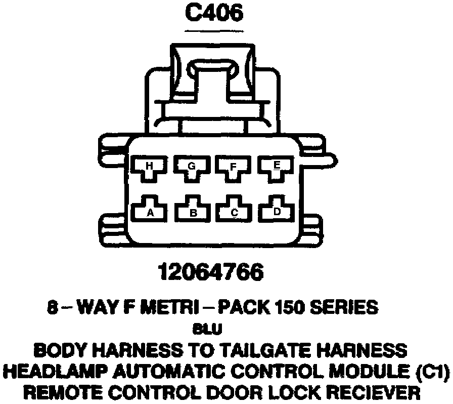 C406: Body Harness To Tailgate Harness, Headlamp Automatic Control Module (C1), Remote Control Door Lock Receiver: