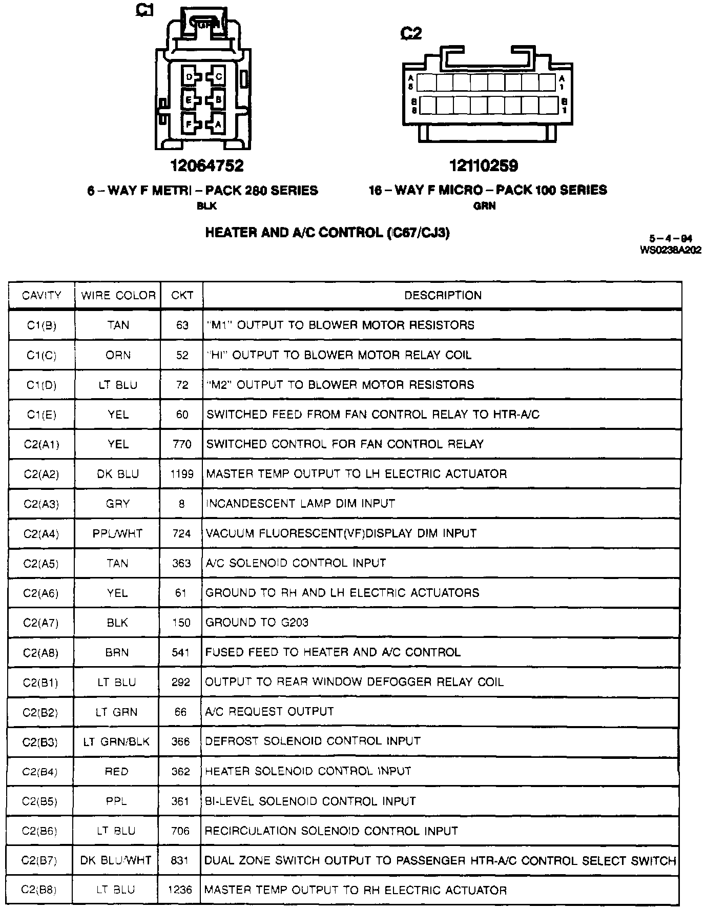 C1 & C2: Heater And A/C Control (C67/CJ3):