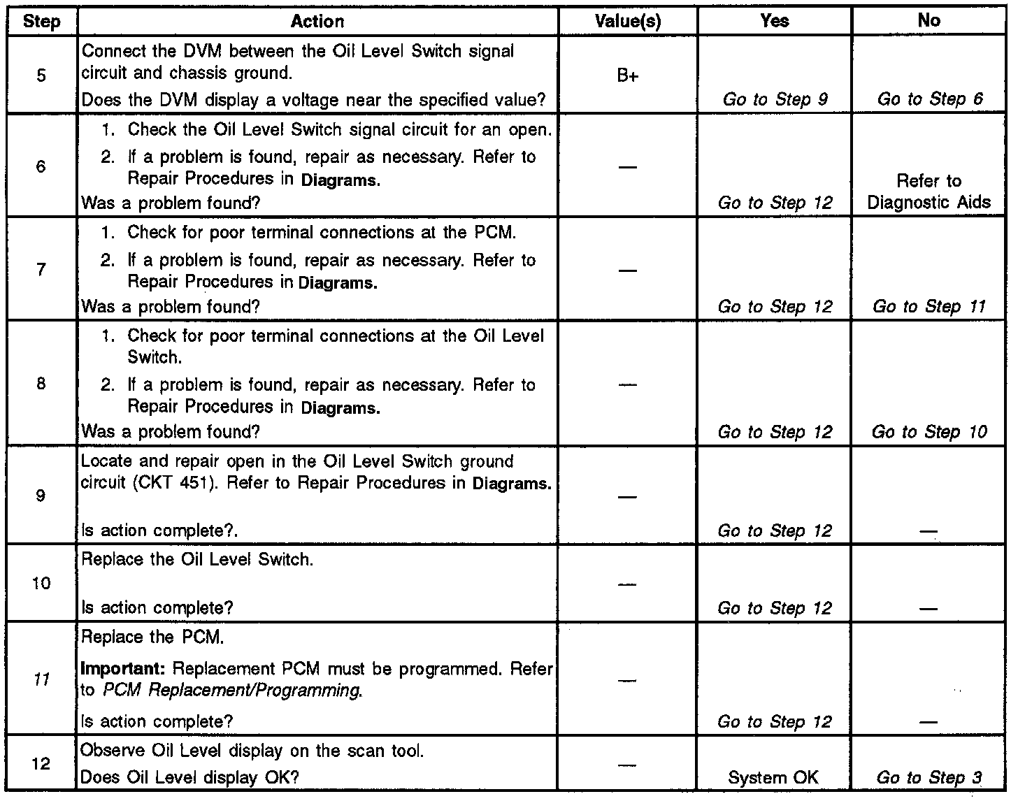 Engine Oil Level Sensor/Switch Diagnosis