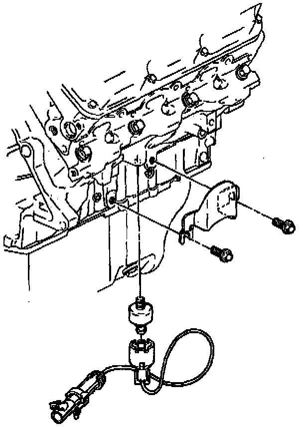 2. Install the knock sensor heat shield mounting bolt located under the freeze plug (or block heater if equipped).