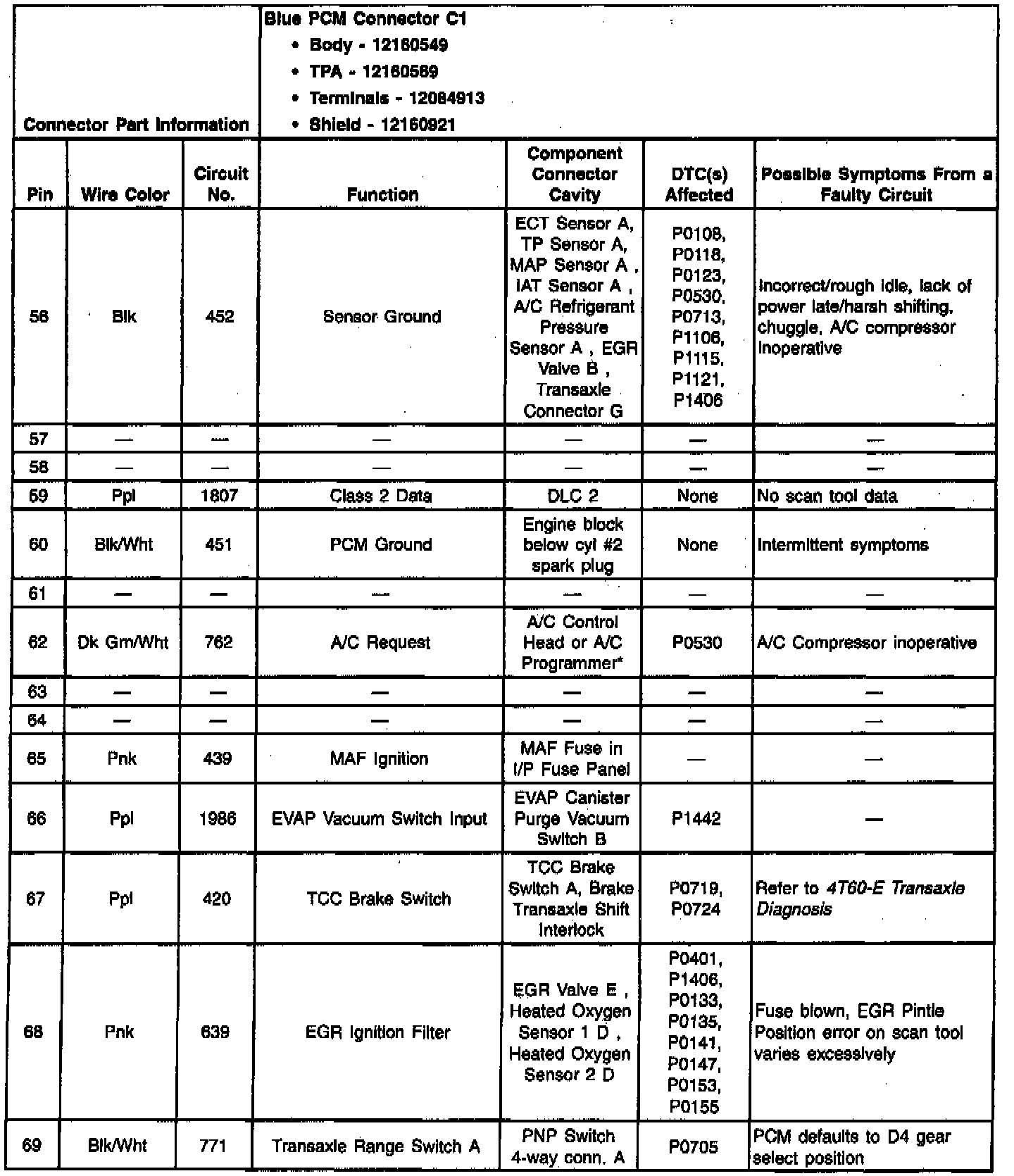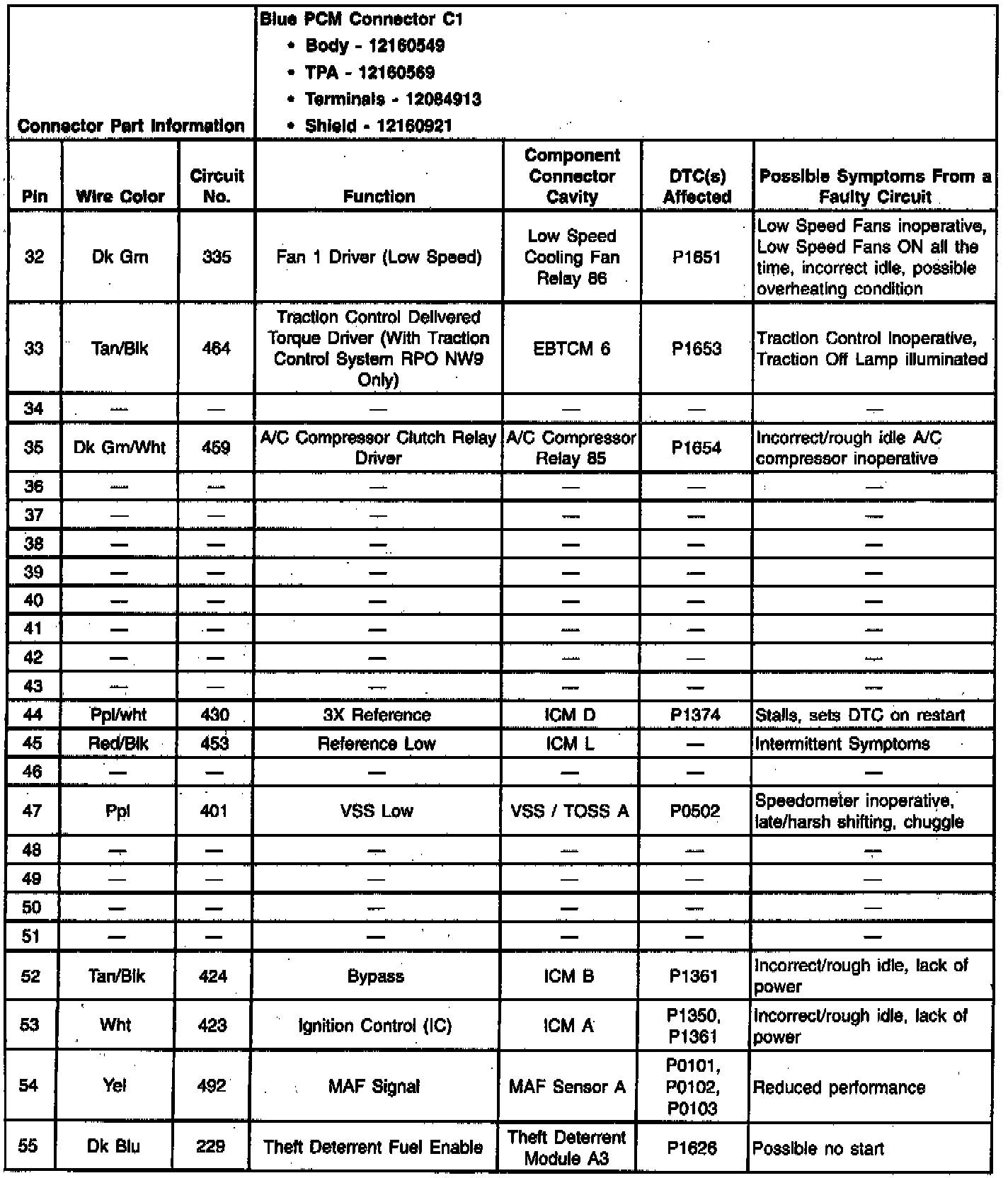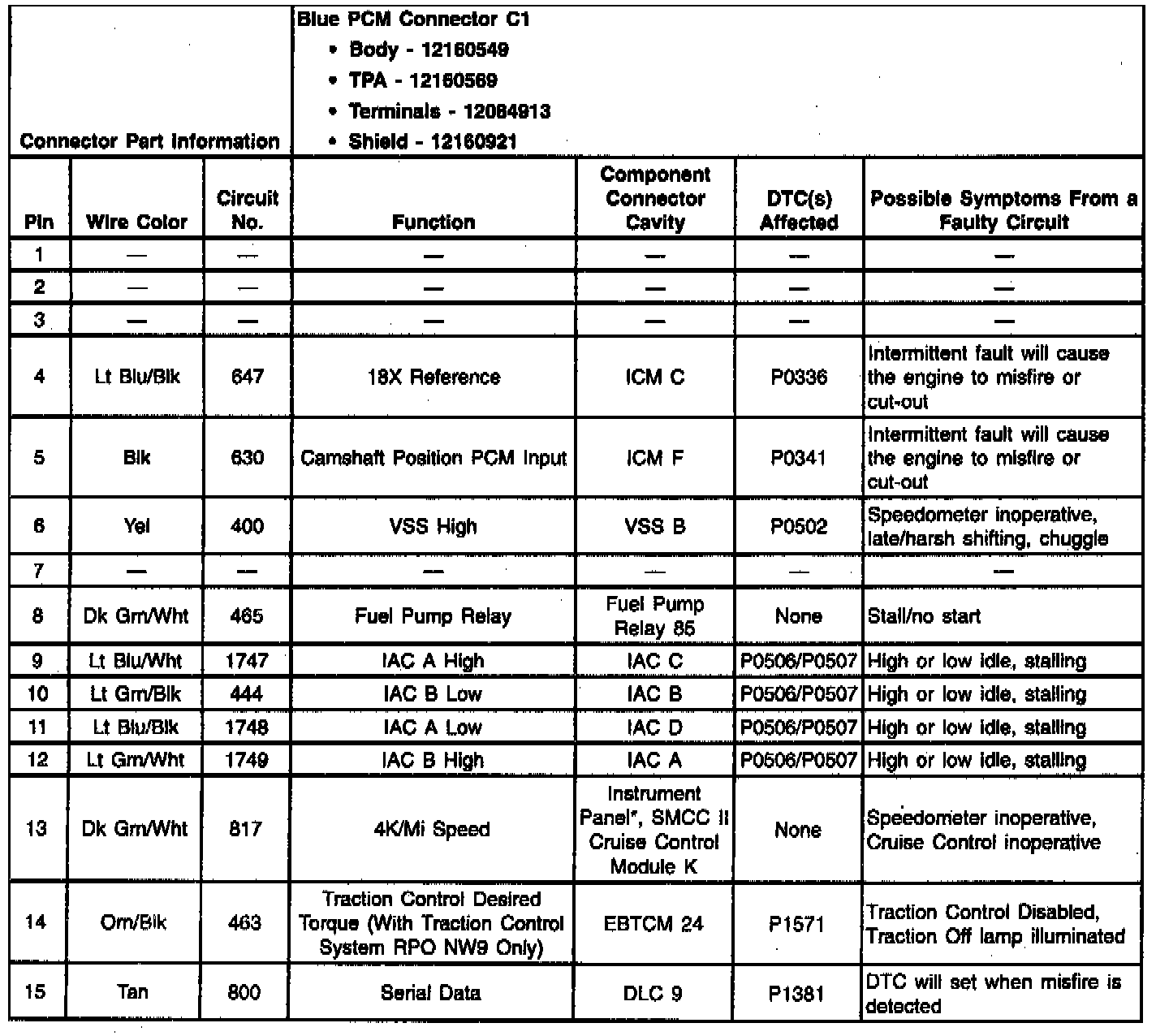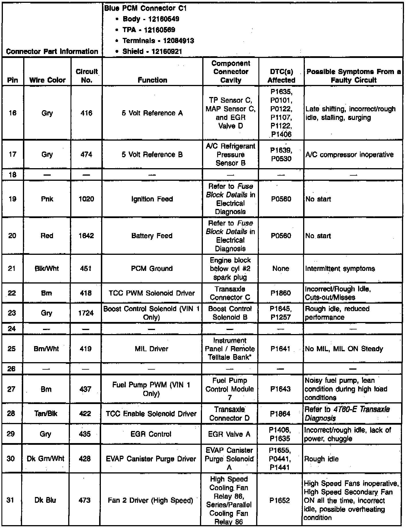 PCM Blue C1 Connector End View: