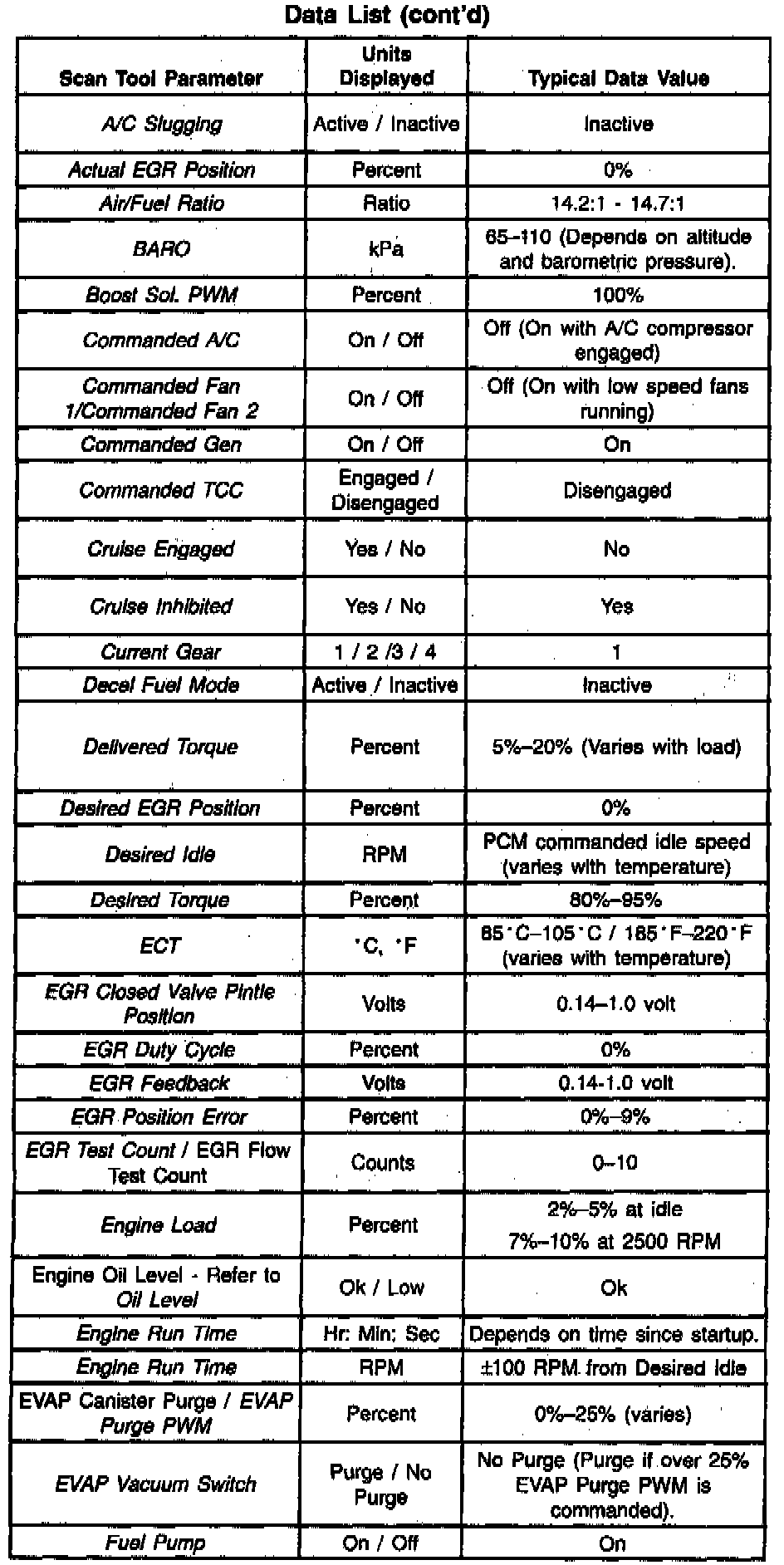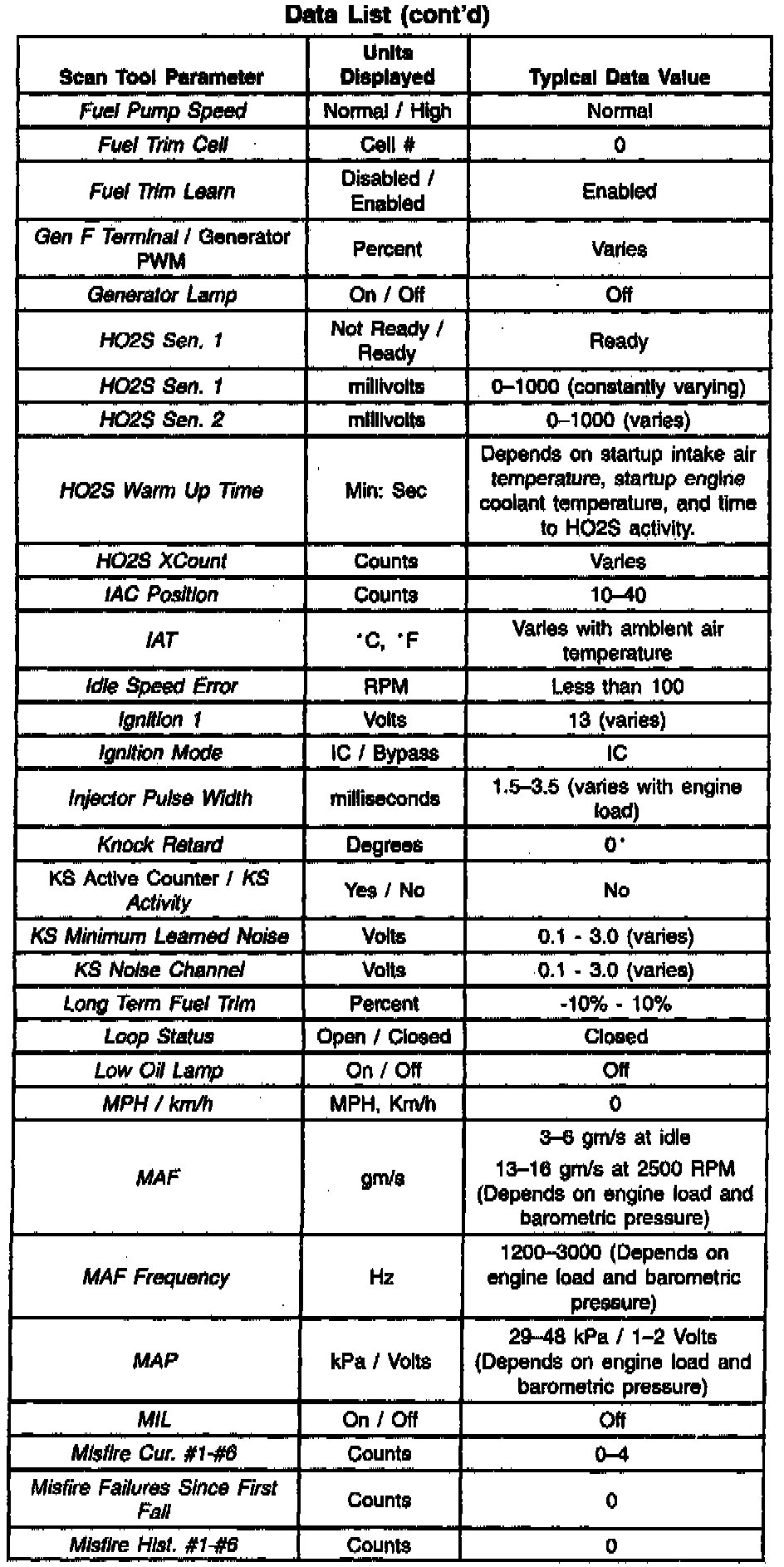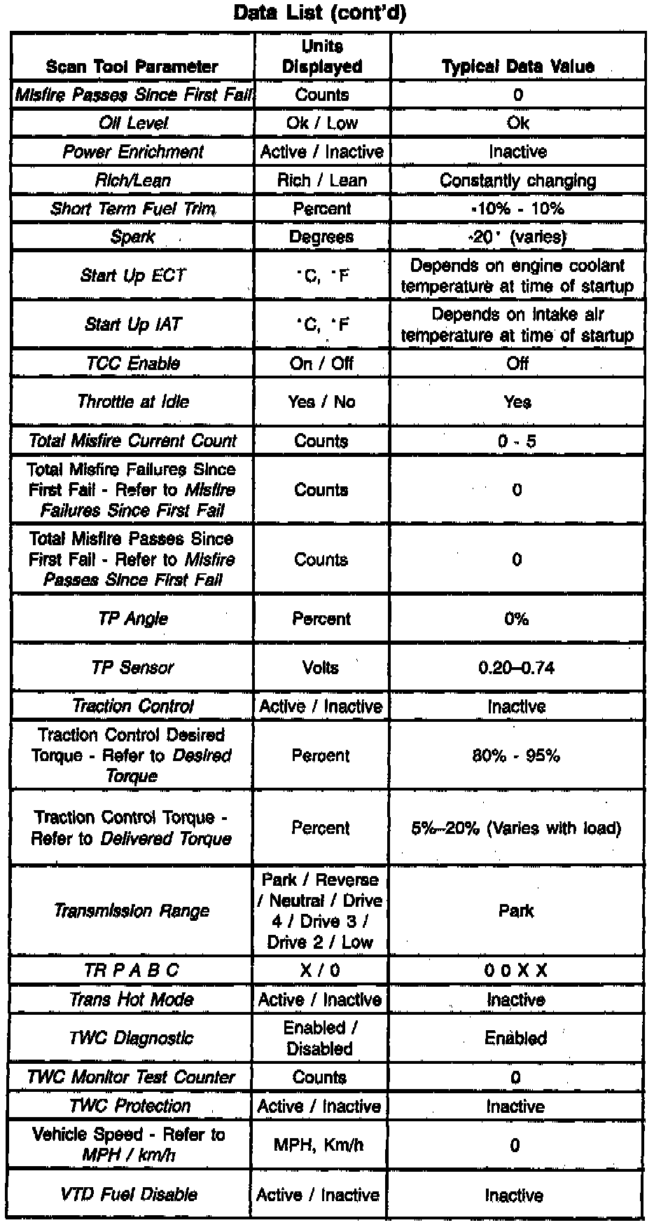 Scan Tool Data List
