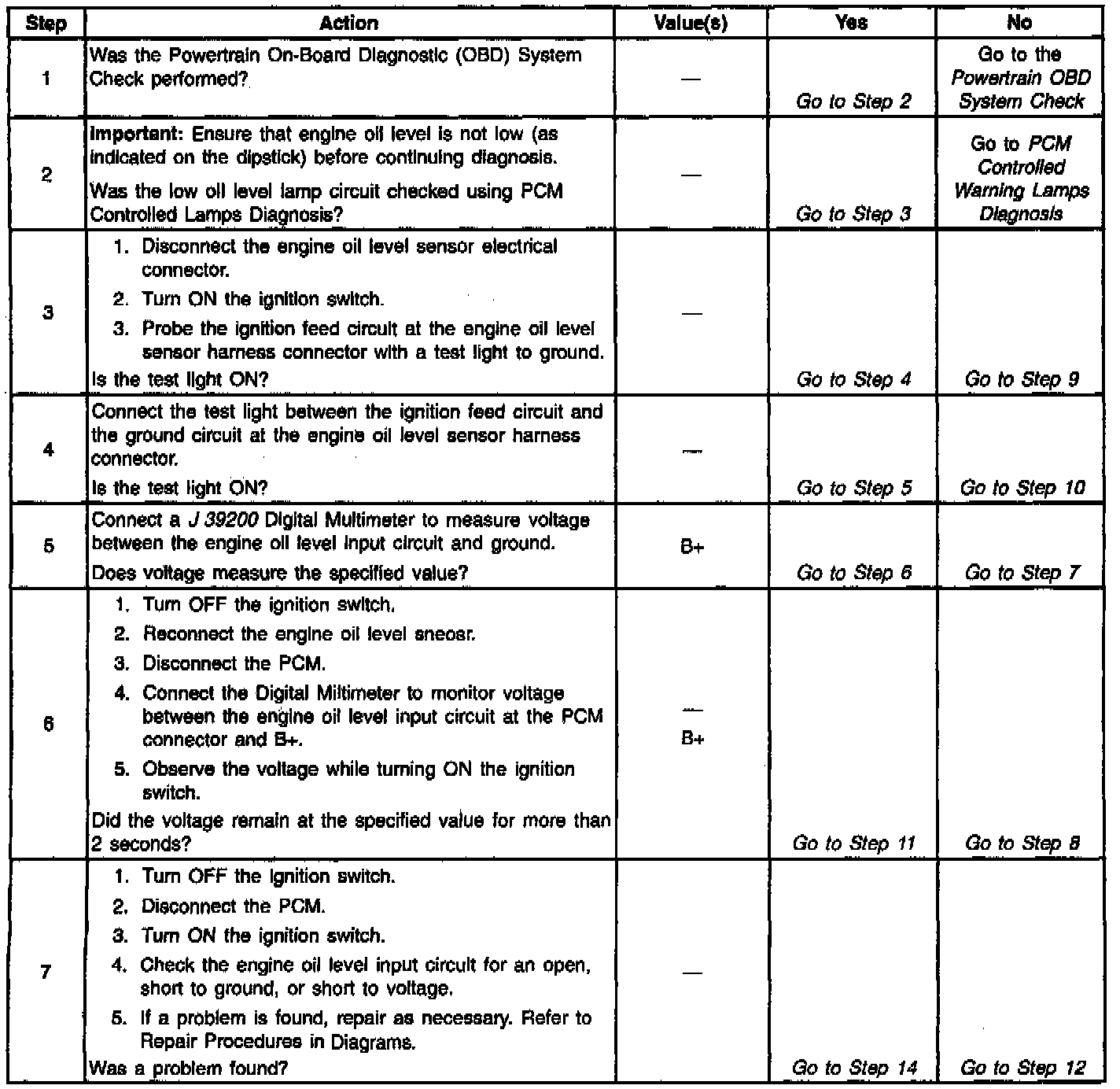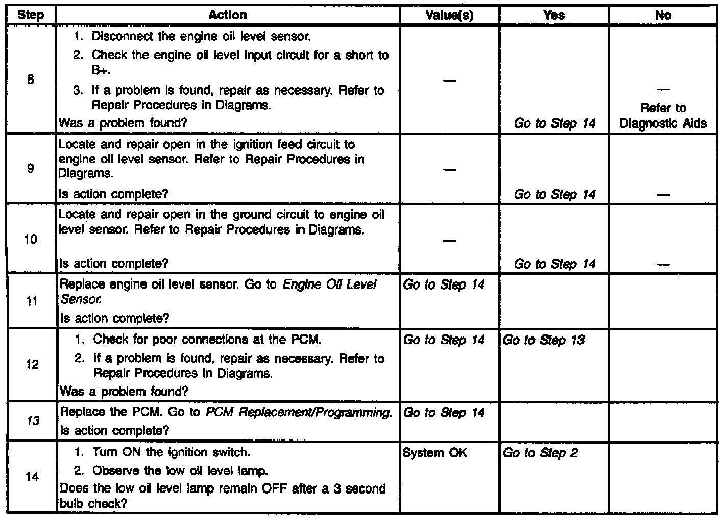 Engine Oil Level Sensor/Switch Diagnosis