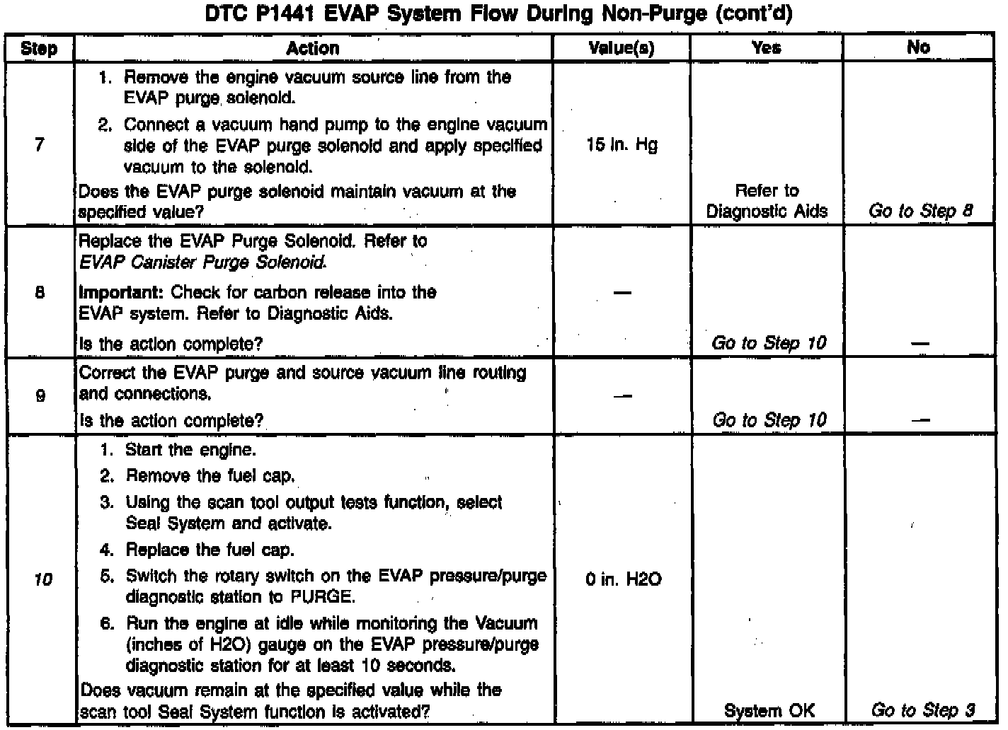 ^ EVAP purge valve control circuit grounded. If any of these conditions are present, DTC P1441 will set.