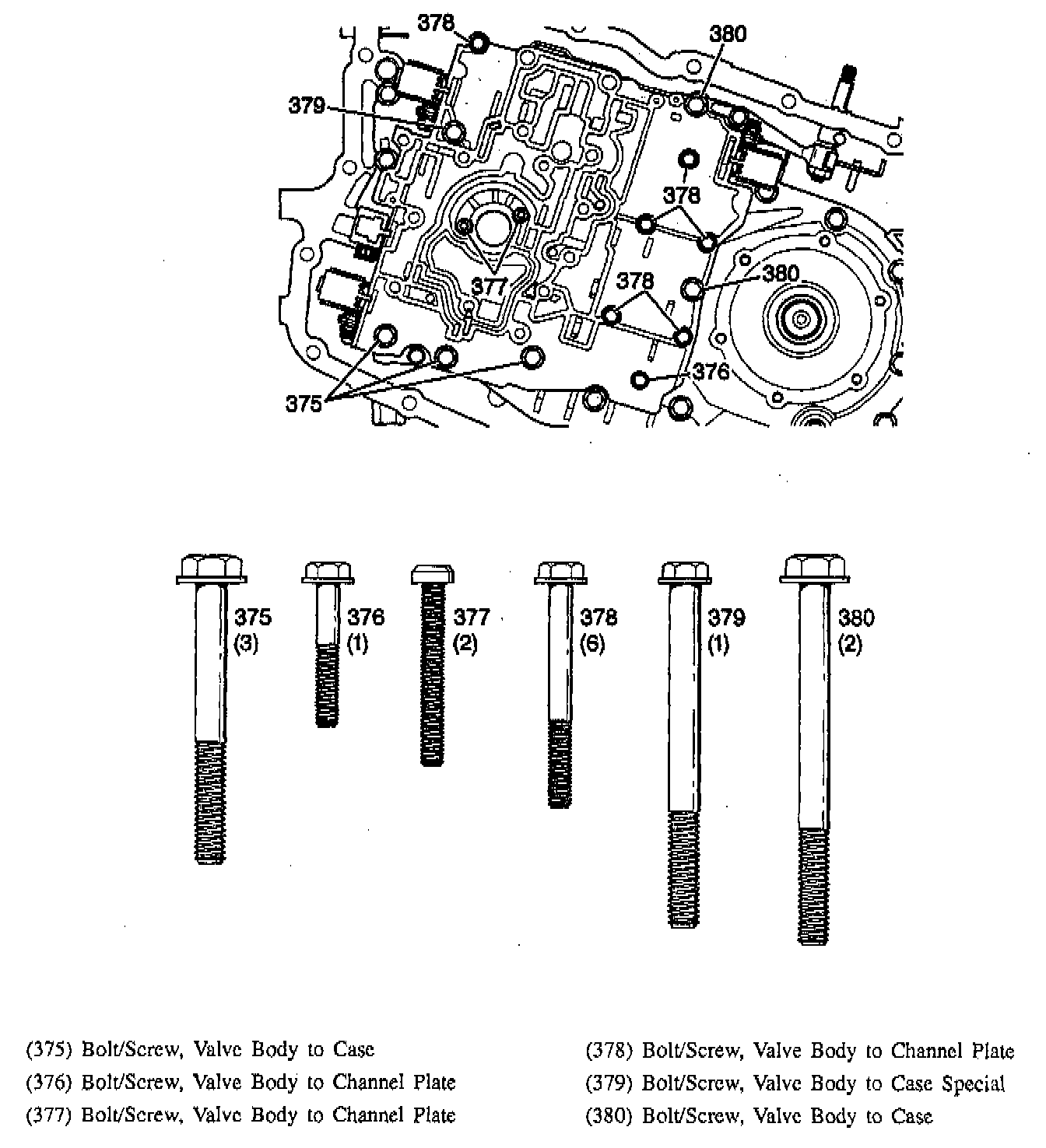 3. Valve body bolts/screws.