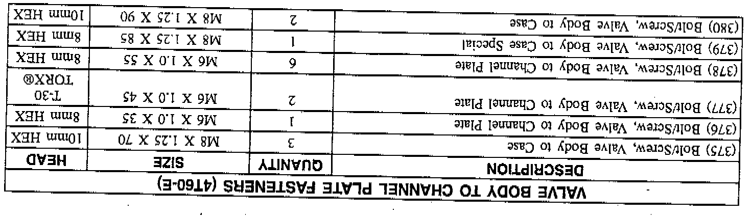 4. Valve body bolts/screws.