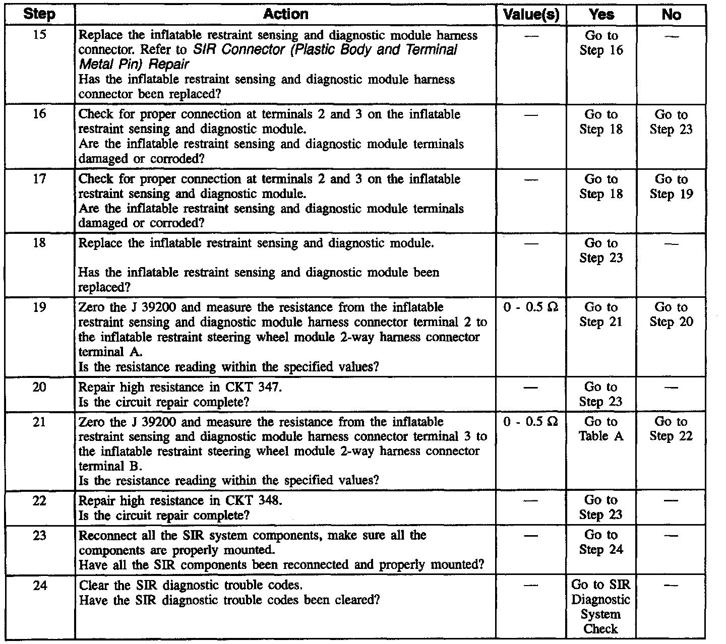 14. This test checks for proper contact and/or corrosion of the inflatable restraint sensing and diagnostic module connector.