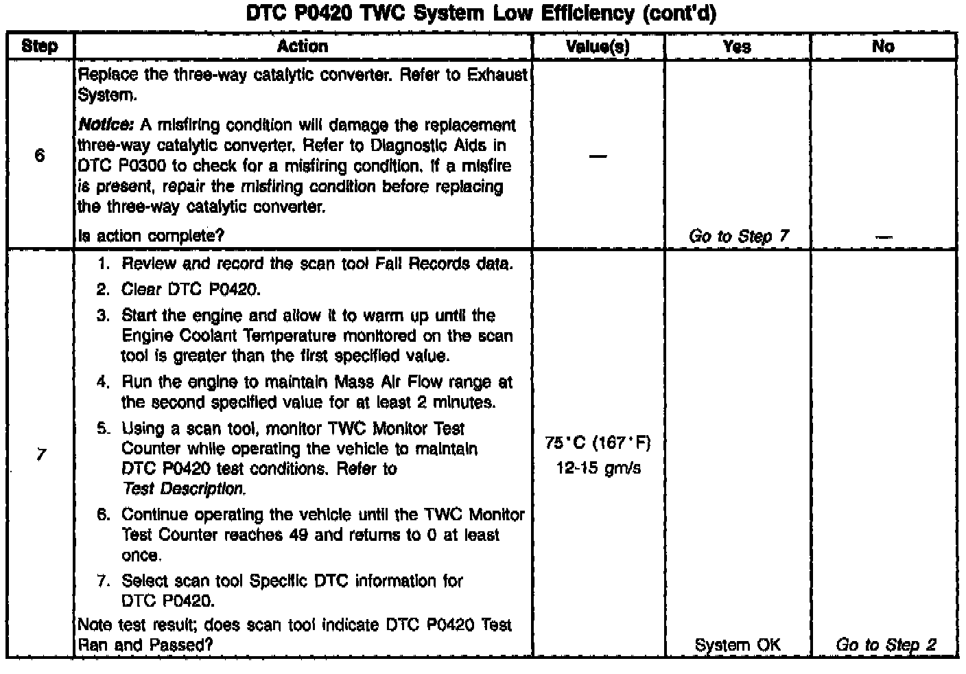 7. Difficulty completing the DTC P0420 test may be encountered in areas where test conditions cannot be maintained easily, especially in urban areas. To minimize the amount of driving required to complete the DTC P0420 test, use the following procedure: