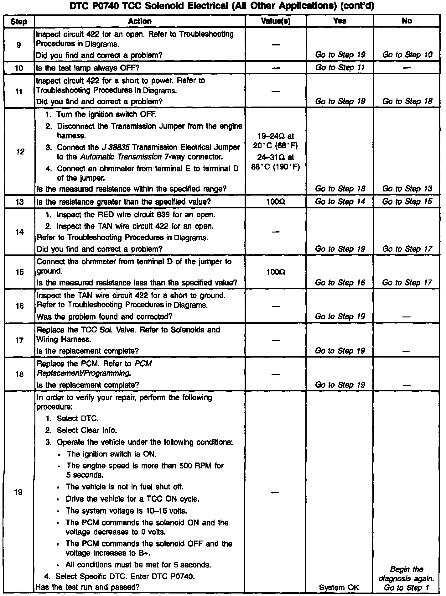 12. This Step verifies that the TCC Sol. Valve is not shorted across its windings or increased its resistance.