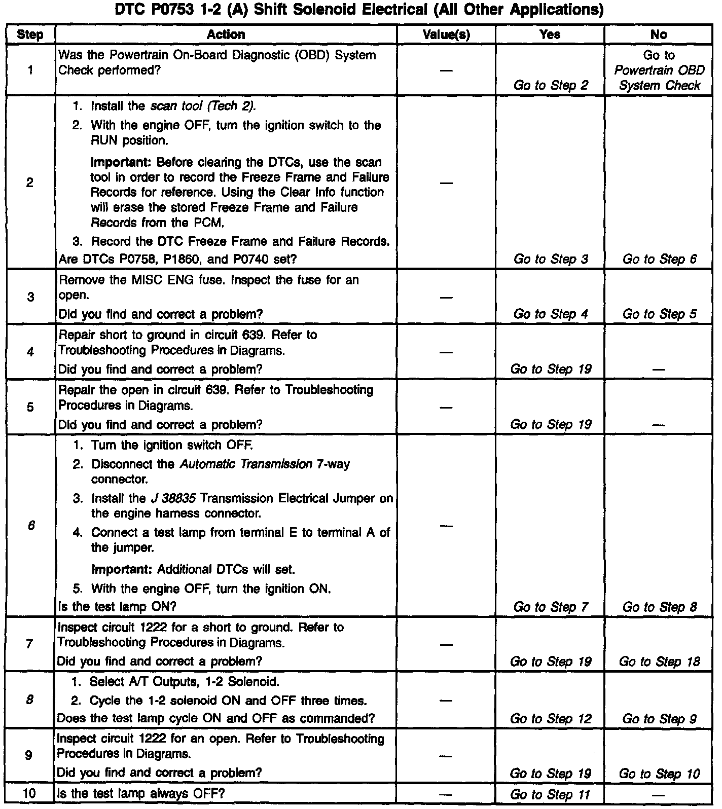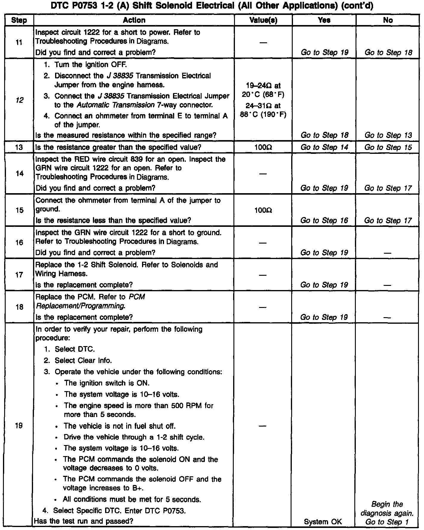 12. This Step verifies that the 1-2 shift solenoid has neither shorted across its windings nor increased its resistance.