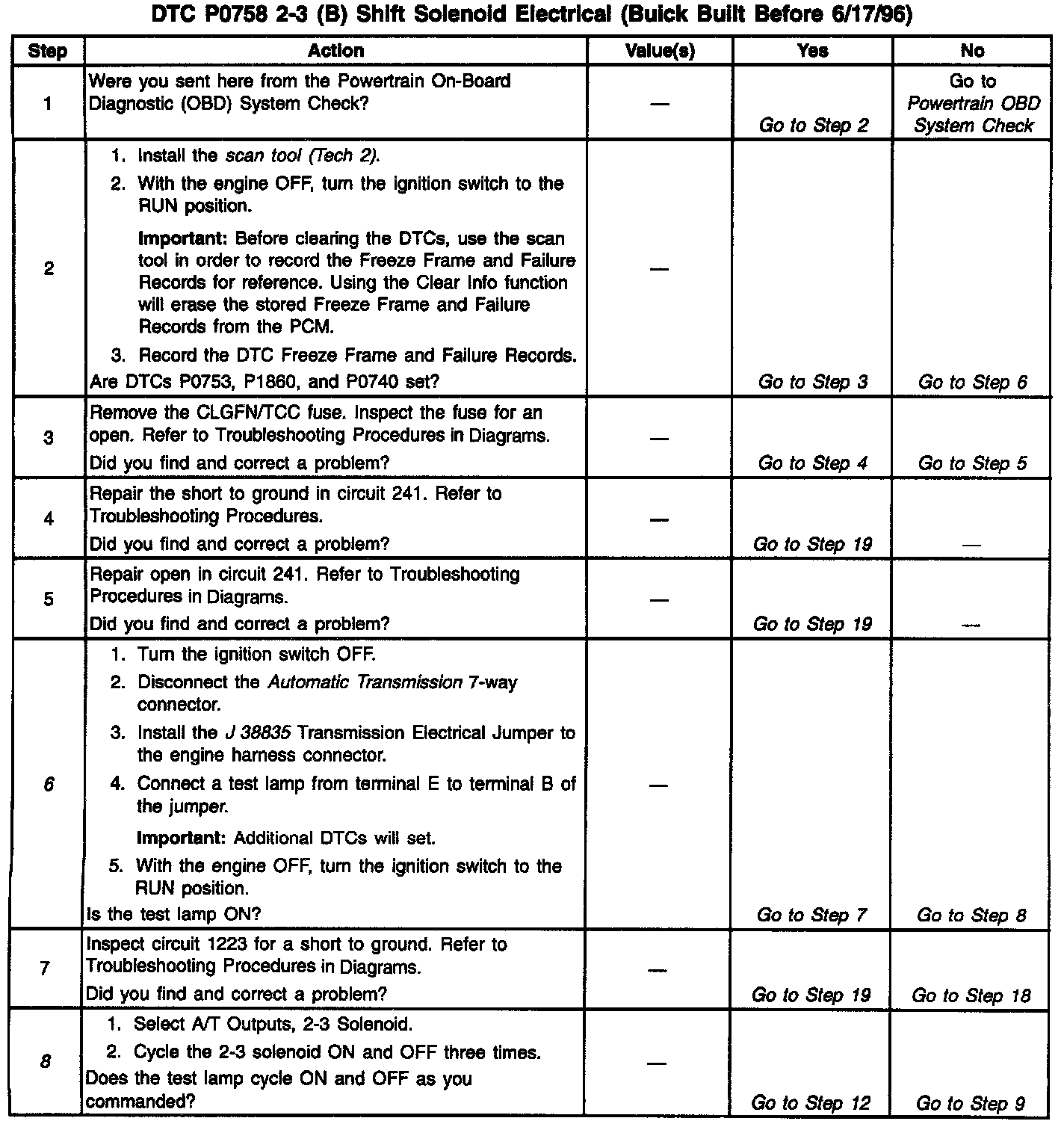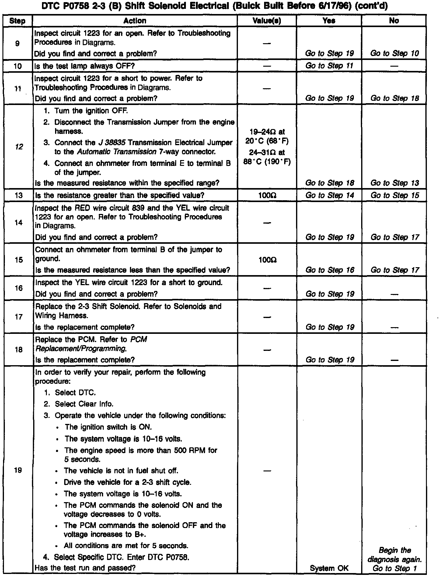 12. This Step verifies that the 2-3 solenoid is not shorted across its windings nor increased its resistance.
