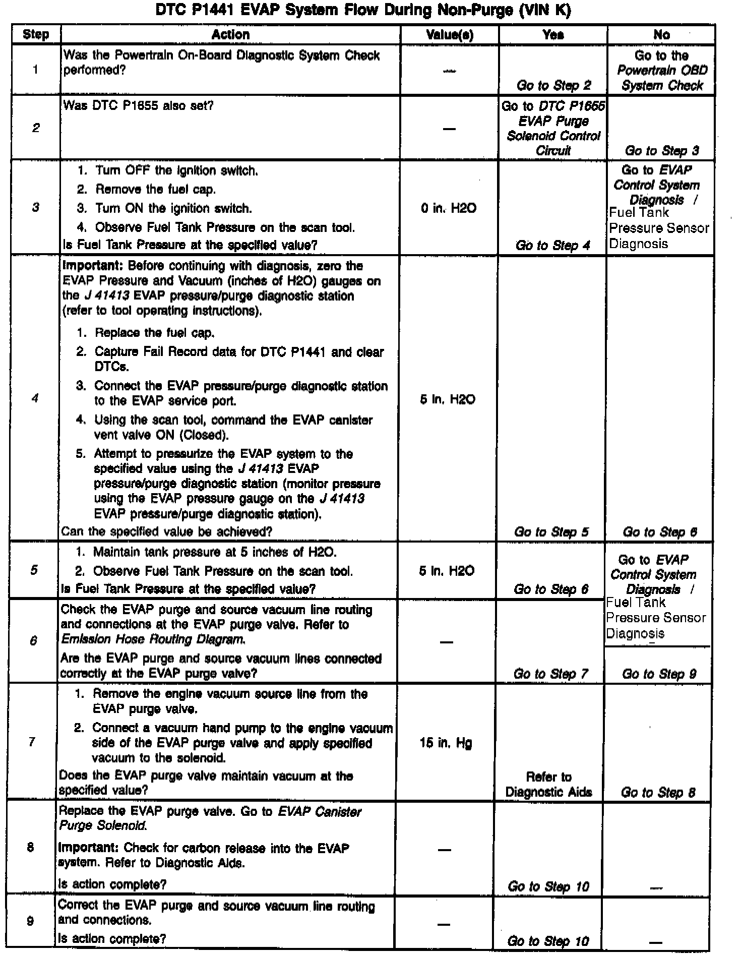 2. If an EVAP purge valve electrical malfunction is present, the purge system will not operate correctly. Repairing the electrical malfunction will very likely correct the condition that set DTC P1441.