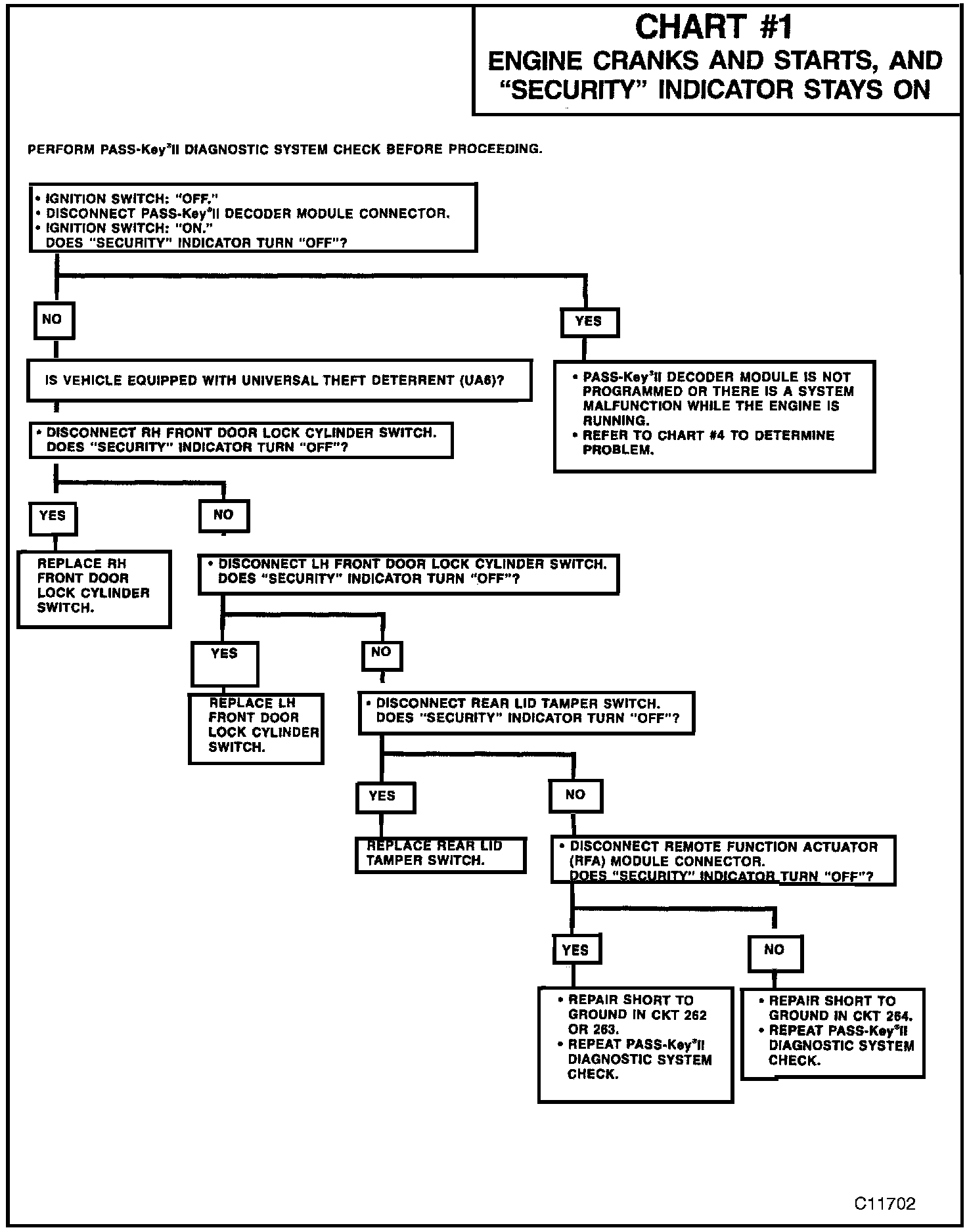 This bulletin is being issued to revise the diagnostic Chart # 1 (Engine Cranks and Starts, and "Security" Indicator Stays On) in Section 8A-133 of the Service Manual.