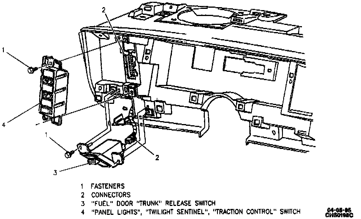 2. Fuel Door/Trunk Release switch fasteners.