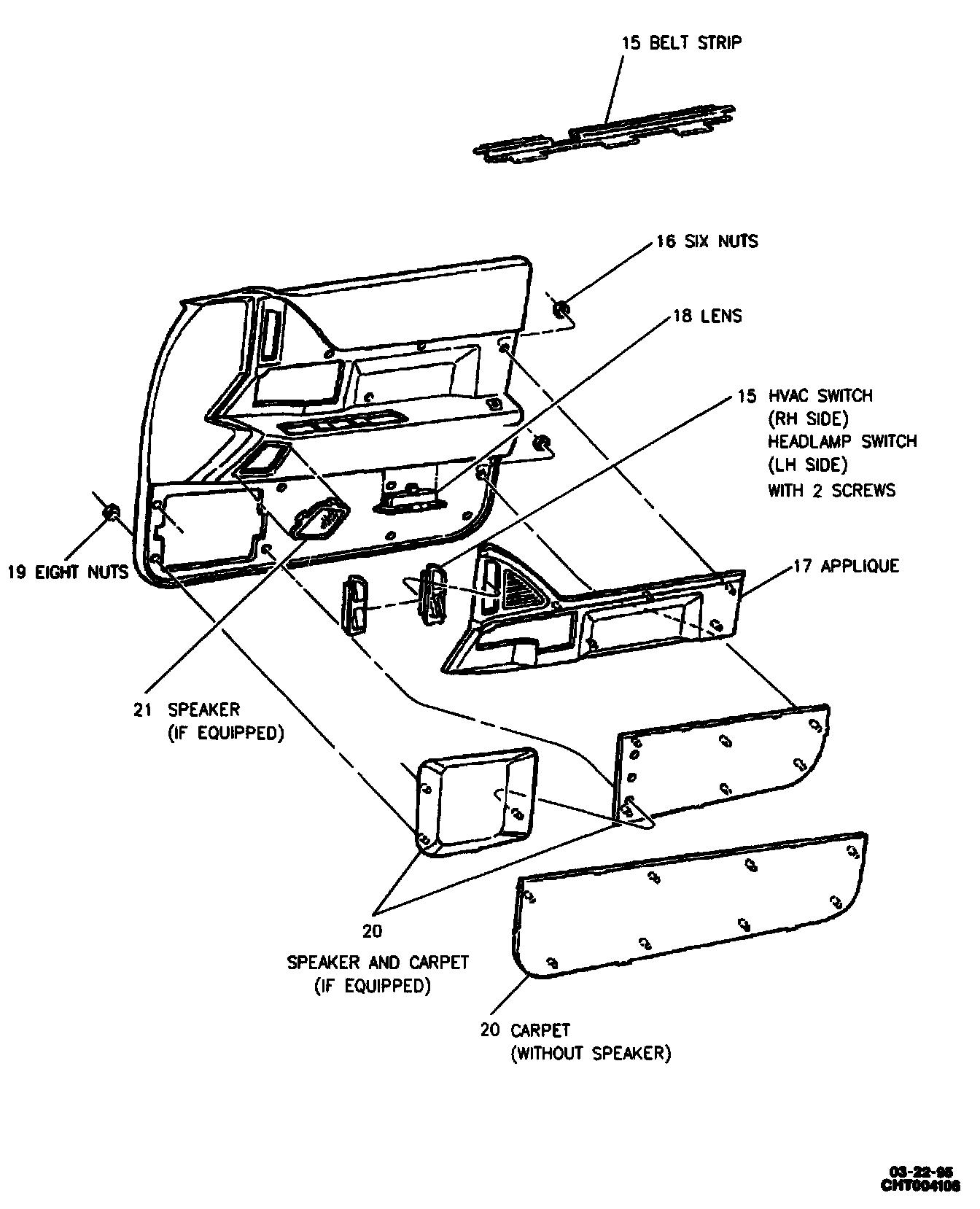 14. Screws from HVAC (RH side) or headlamp switch (LH side) then remove from applique.