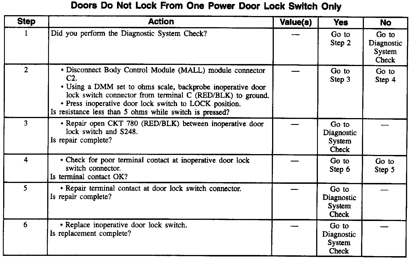 Doors Do Not Lock From One Power Door Lock Switch Only: