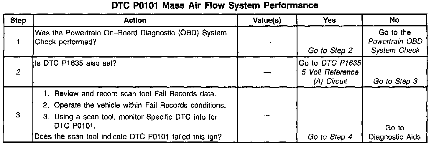 If DTC P0101 cannot be duplicated, the information included in the Fail Records data can be useful in determining vehicle mileage since the DTC was last set. This may assist in determining how often the DTC sets.