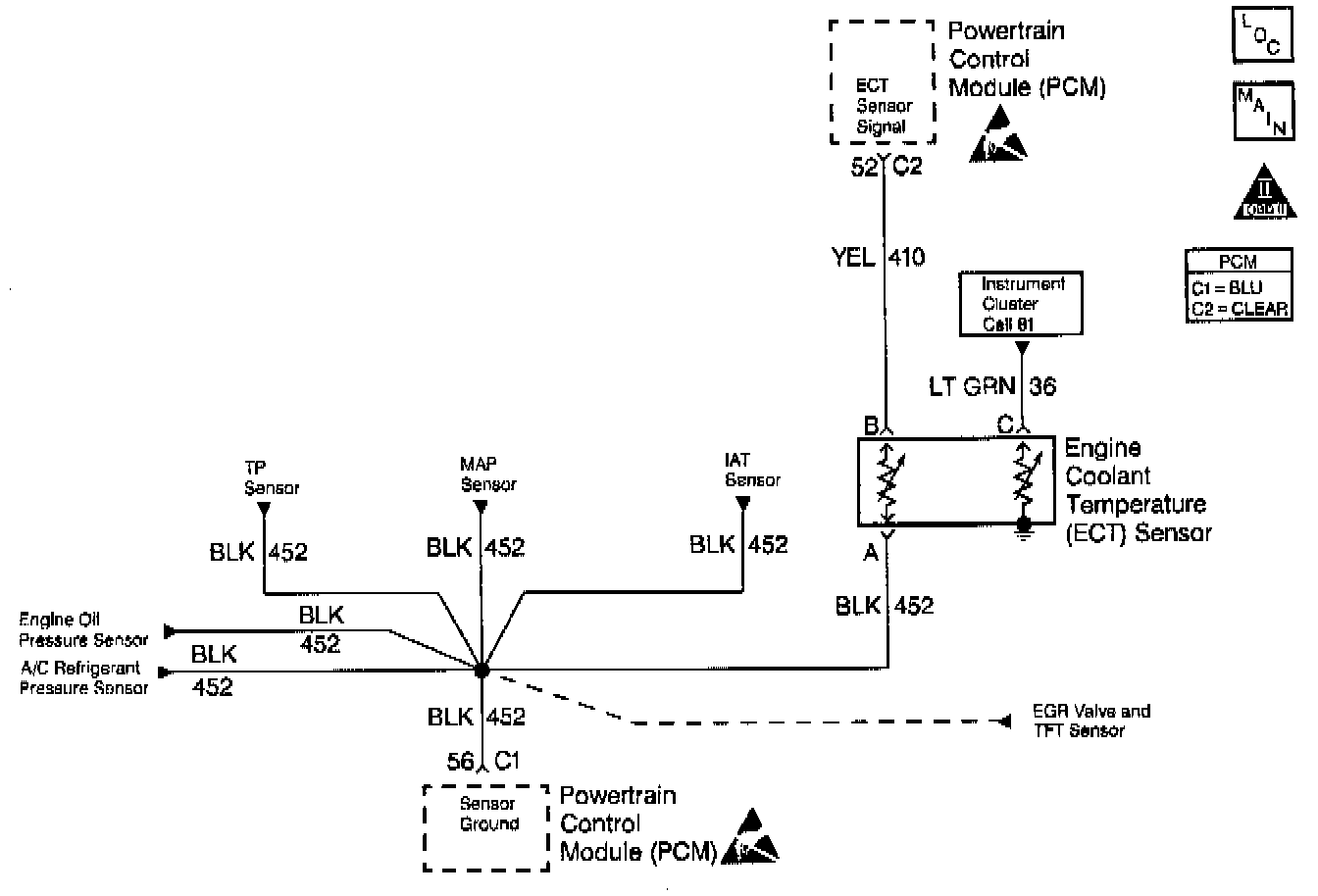 ^ Check for high resistance in wiring related to the ECT sensor. Also, check for poor connections at ECT sensor and PCM. Refer to Troubleshooting Procedures in Electrical Diagnosis.