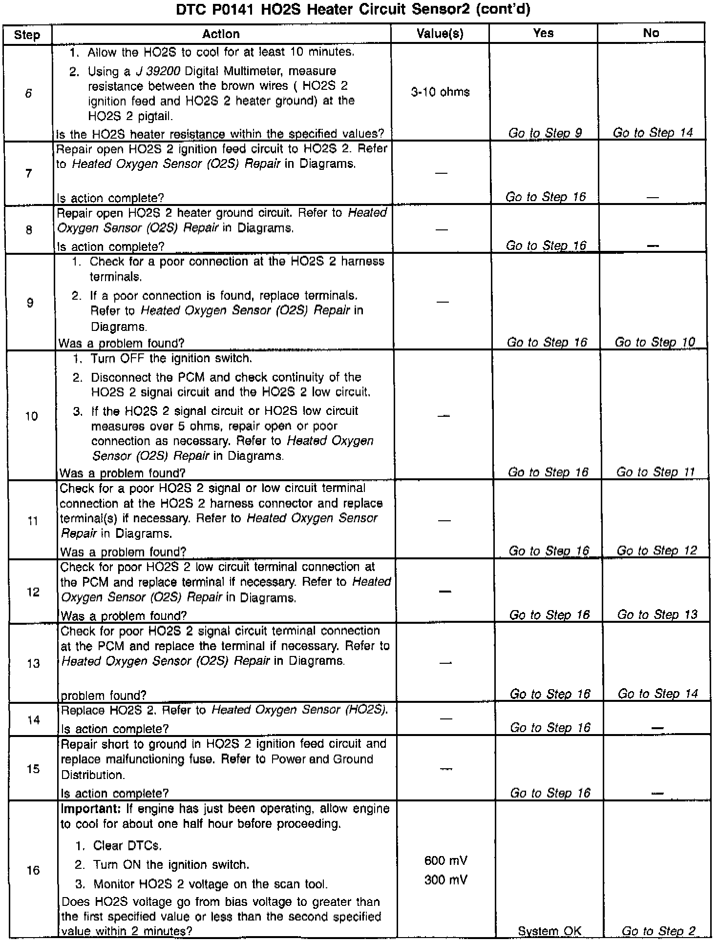 11. An open HO2S signal or low circuit can cause the DTC to set with a good HO2S. Check the HO2S signal and the HO2S low circuits before replacing the sensor.