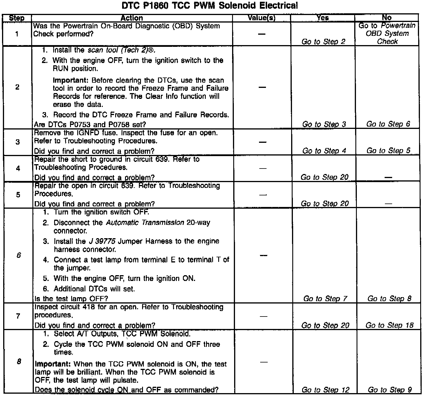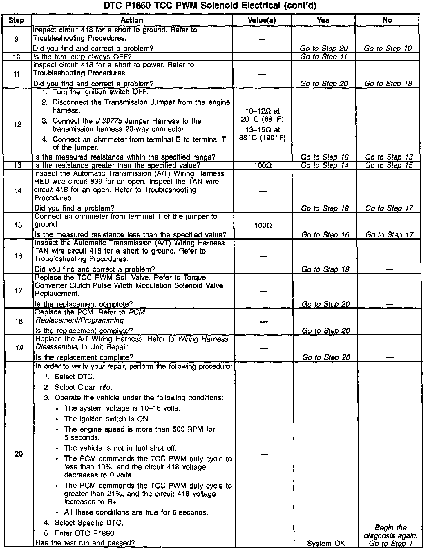 12. This step verifies that the TCC PWM solenoid is not shorted across its windings or increased its resistance.