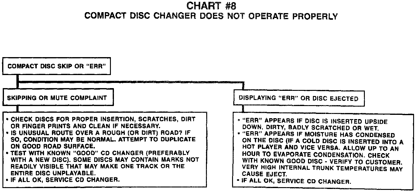Chart #8 Compact Disc Changer Does Not Operate Properly: