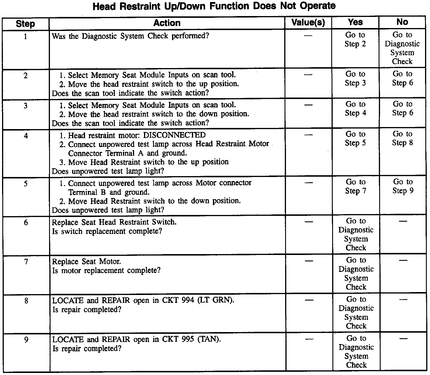 Diagnosis By Symptom - Memory Seats
