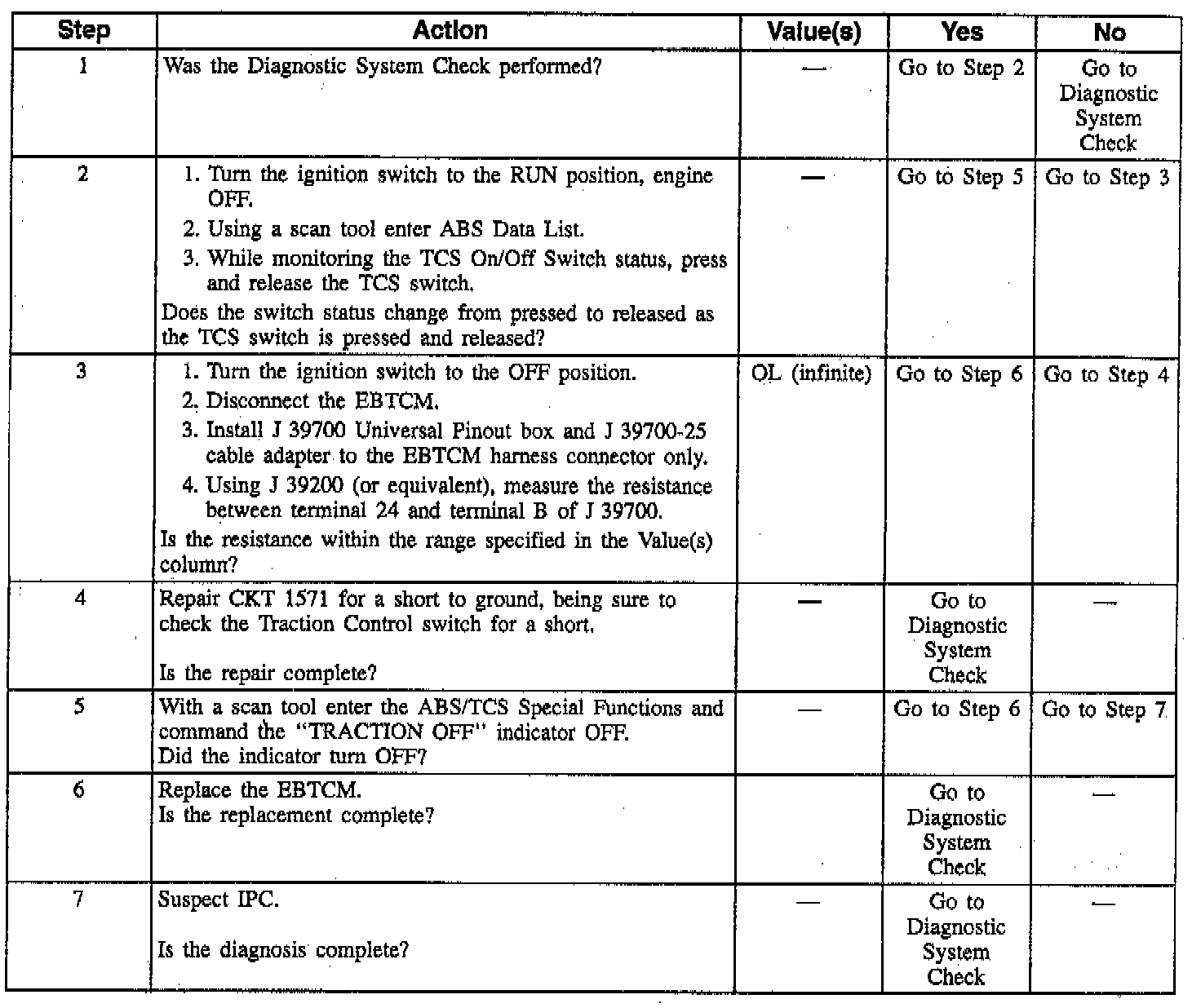 "Traction Off" Indicator "On" With No DTC(s) Set: