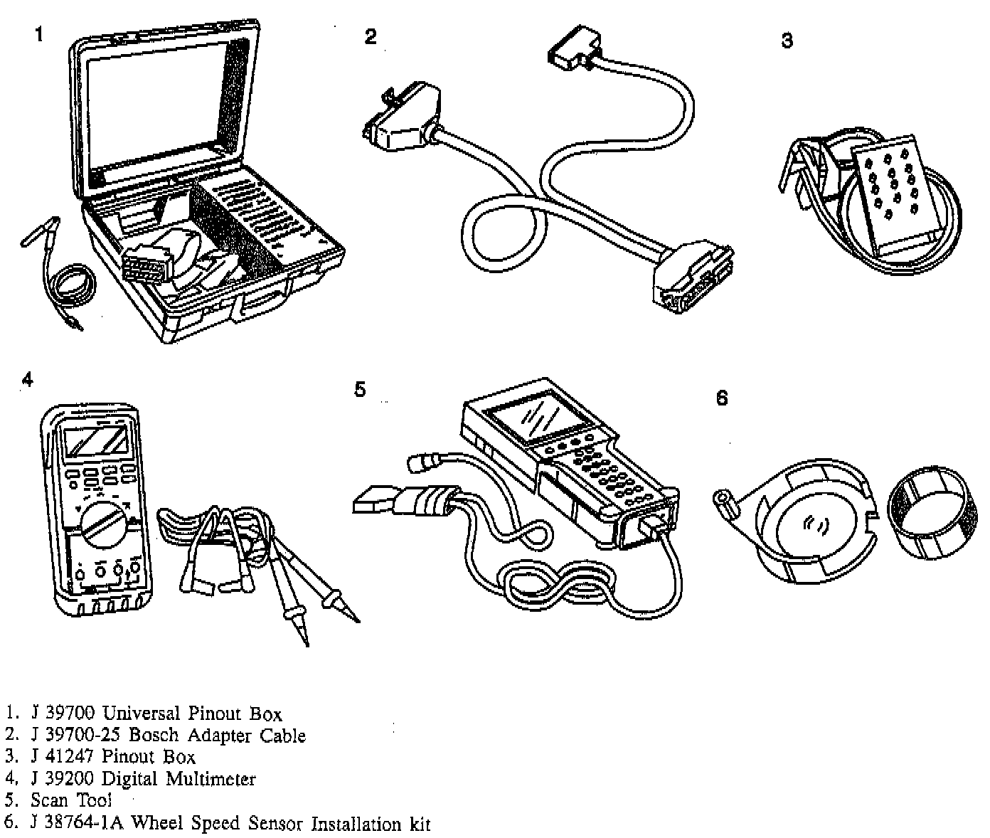 The J 39700 Universal Pinout Box must be used with the J 39700-25 Bosch Adapter Cable. Always connect the J 39700 assembly to the vehicle harness and/or Electronic Brake/Traction Control Module (EBCM/EBTCM) as directed by the diagnostic table. Ensure the ignition is "OFF" when connecting or disconnecting the J 39700.
