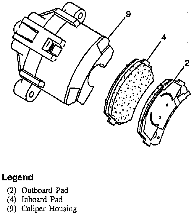 CAUTION: Original equipment or equivalent brake lining material is recommended to maintain the balance between front and rear brake performance. These brake parts have been carefully selected to provide the proper brake balance for purposes of both stopping distance and control over the full range of operation conditions. Installation of front or rear brake lining material with performance different from that of the replacement parts recommended for this vehicle can change the intended brake balance of this vehicle.REMOVE OR DISCONNECT