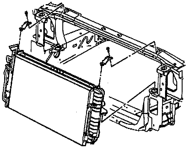 13. Upper radiator mounting brackets.