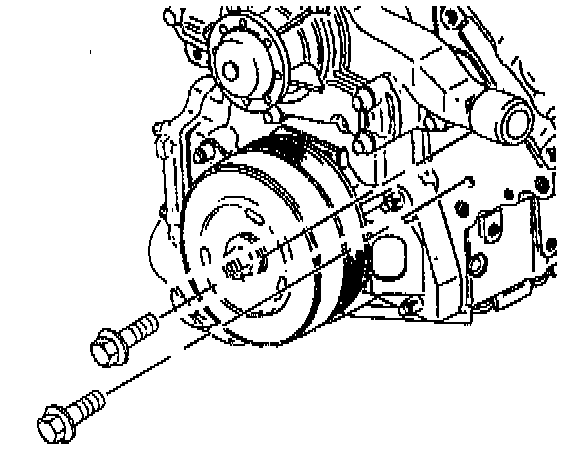 b. Place the dial indicator stem on the transmission mounting bolt hole boss. set the indicator to O.