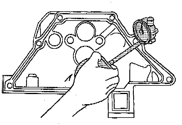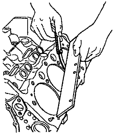 11. Inspect the oil pan rail for nicks. Inspect the front cover attaching area for nicks. Use a flat mill file in order to remove any nicks.