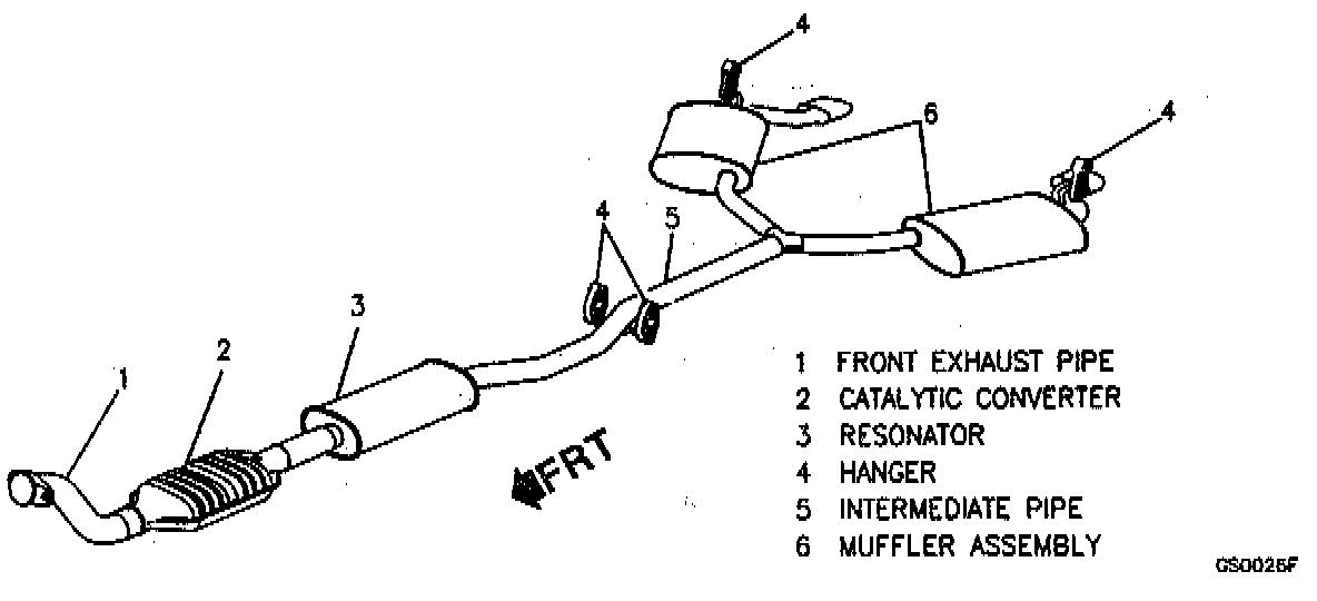 The exhaust system is welded and can be serviced by components.^ Exhaust Manifold to Catalytic Converter down pipe.