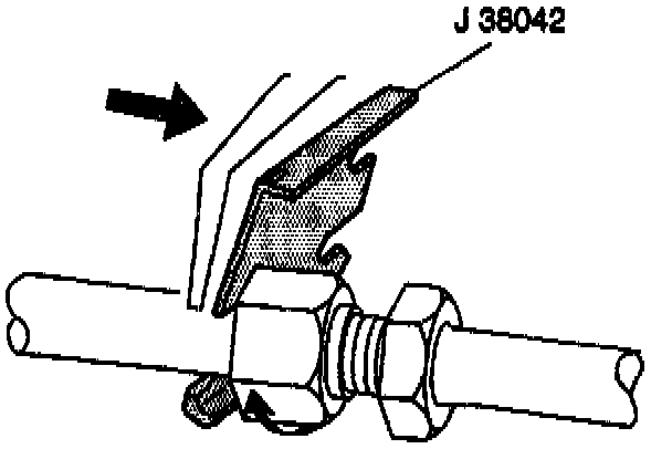 ^ Use a J 38042 dual O-ring tube separator to separate the joint while loosening the female nut.