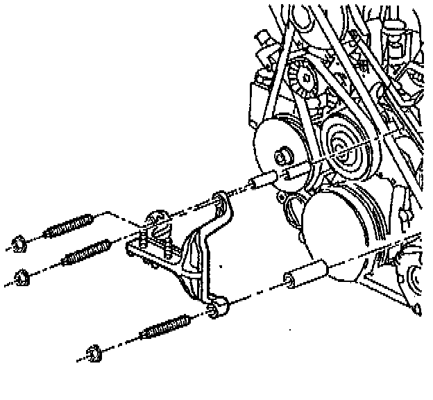 NOTE: The supercharged 3800 engine uses two accessory drive belts. The outer belt drives the supercharger. The inner belt drives the generator, power steering pump, coolant pump and air conditioning compressor. All driven accessories are rigidly mounted to the engine. Drive belt tension is maintained by the spring loaded belt tensioners. Each belt has its own tensioner. A belt squeak when the engine is started or stopped is normal and has no effect on belt durability. The drive belt tensioner can control belt tension over a broad range of belt lengths due to stretching; however, there are limits to the tensioners ability to compensate. Using the tensioner outside of its operating range can result in poor tension control and/or damage to the tensioner. The belt should be replaced when this condition occurs.CAUTION: Ensure that the wood block extends past the width of the oil pan in order to avoid damage.