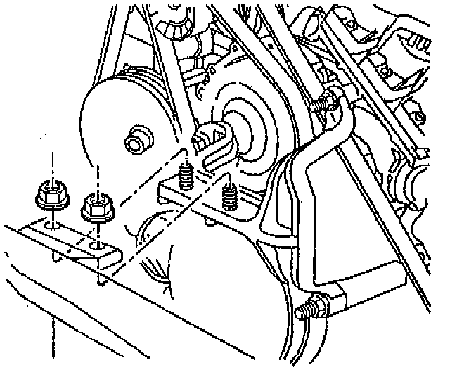 4. Install the engine mount-bracket front upper and lower nuts. Tighten the nuts to 78 Nm (58 ft. lbs.).