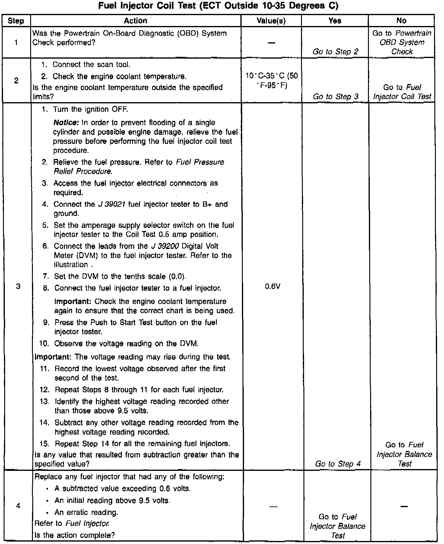 Fuel Injector Coil Test - ECT Temp Outside 10-35 Deg C